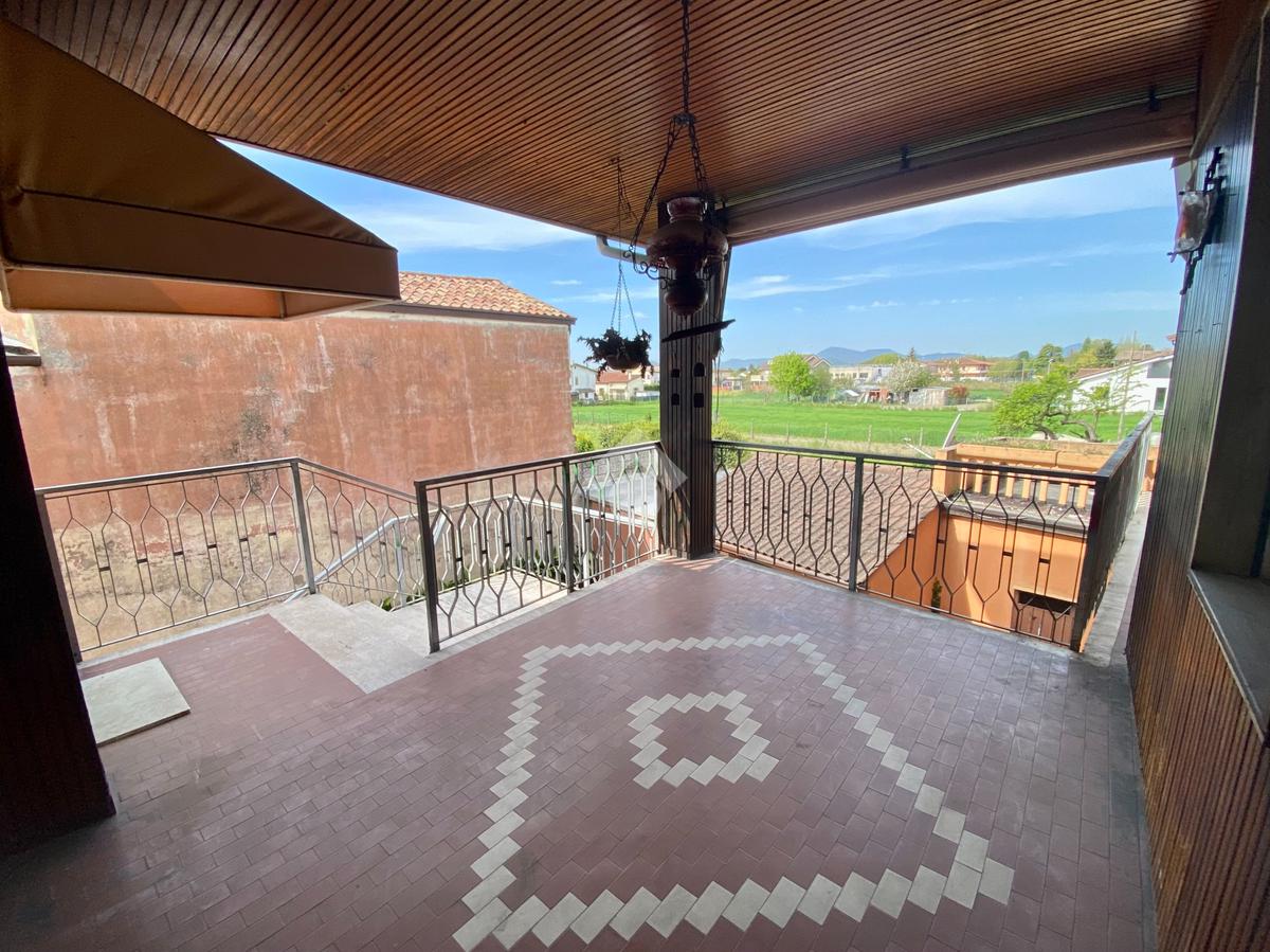 Il piano primo è ad uso abitativo e così composto: ampio soggiorno, cucina abitabile, ampio ingresso, 2 bagni finestrati, 5 camere da letto. Per un totale di più 150 mq. Tali spazi consentono privacy e comodità anche a famiglie numerose. Un ulteriore spazio vivibile in ogni stagione è l'ampio terrazzo porticato con vista sui colli.