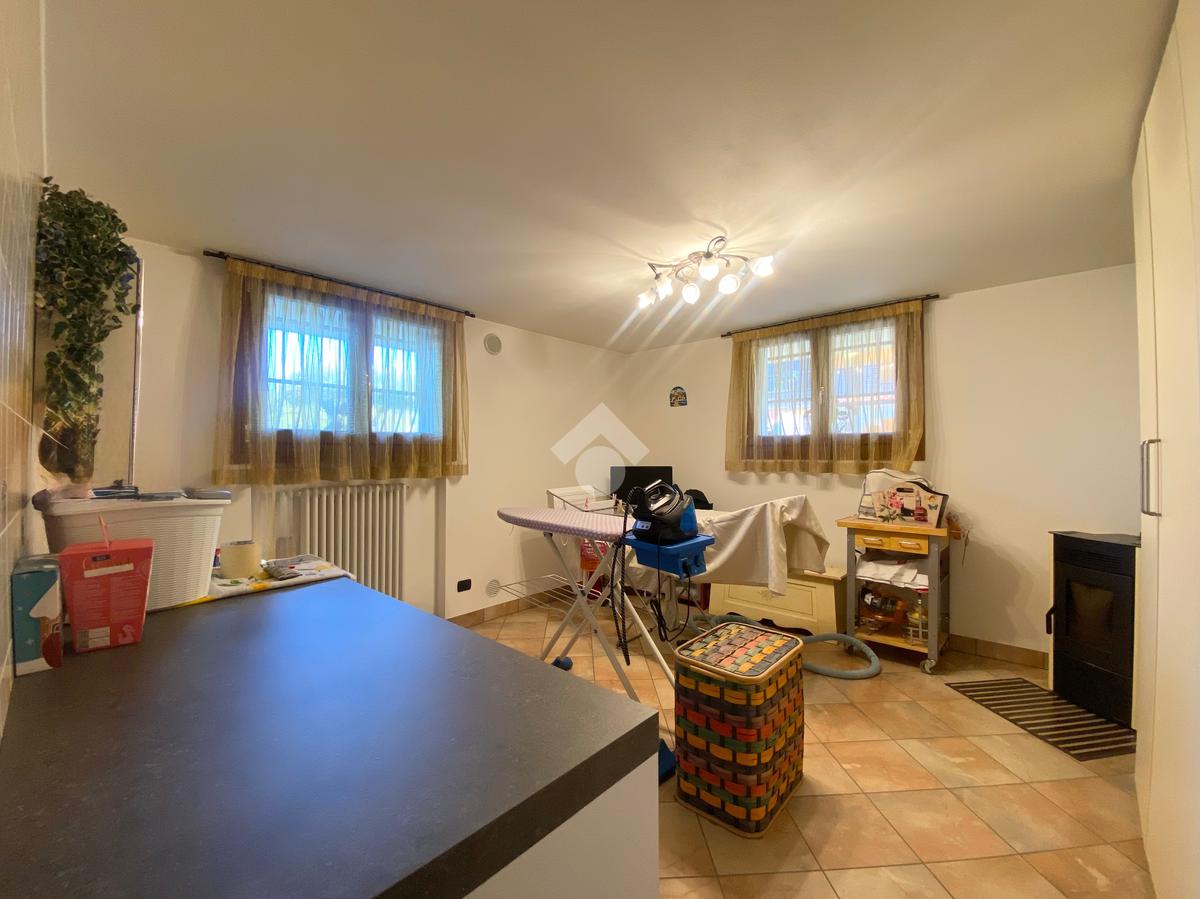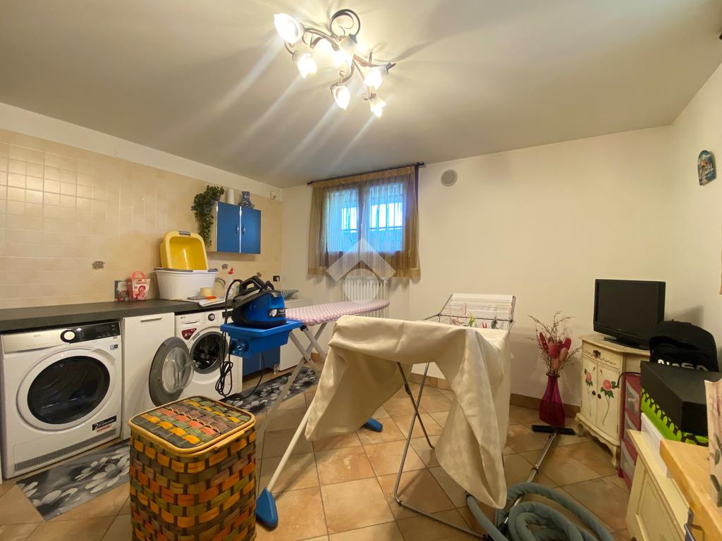 Dalla zona living si scende ad un ulteriore ambiente dell'abitazione composto da una taverna, da un pratico bagno/lavanderia finestrato e da un ampio garage doppio. Esternamente è presente un box da tre posti auto.